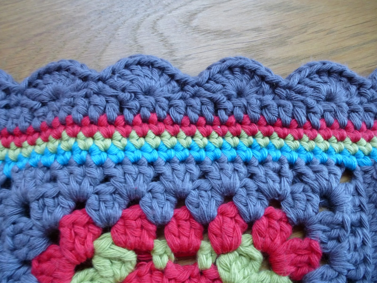 Trots op m'n eerste gehaakte deken en wat is het lekker warm om er onder te zitten. In totaal heb ik er viereneenhalve maand aan gewerkt. Omdat halverwege het creatieve proces m'n rode en groene Drops Paris katoen op was, ben ik met de kleuren die ik nog wel had alvast aan een tweede deken begonnen want het is verslavend werk.